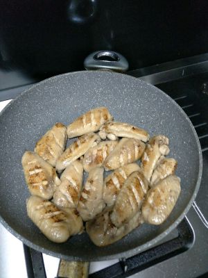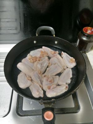 起锅,倒入少量油放入鸡翅煎成两面金黄