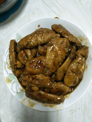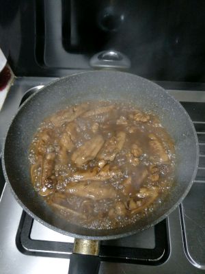 鸡翅下锅煎至两面金黄,倒半瓶可乐,姜片,焖煮收汁即可