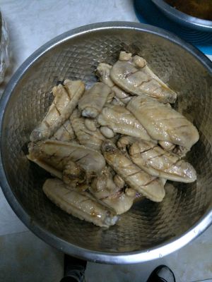 鸡翅放料酒,盐,鸡粉,酱油腌制十五分钟左右