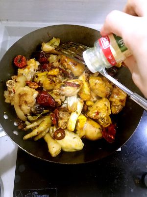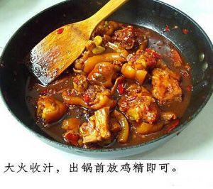 加入老抽,翻炒均匀,加入半罐啤酒,鸡精,少许盐,焖10分钟。