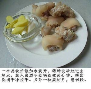 1:将猪蹄切成三小段,用清水将血水洗净!