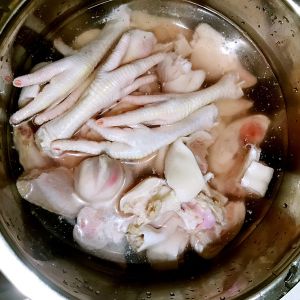 猪蹄、鸡爪、鸡中翅清水浸泡1小时泡出血水