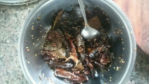 碗内辣椒粉、花椒粉、盐依据个人口味调量,喜麻辣的可以多加些。锅内油烧热后,倒入碗中炸香。