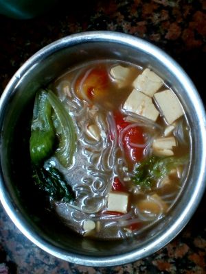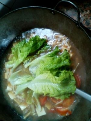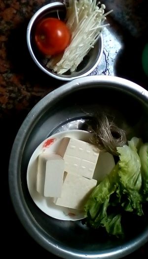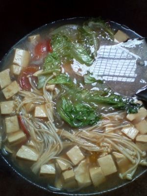 豆腐和红薯粉下锅,最后加蔬菜哦