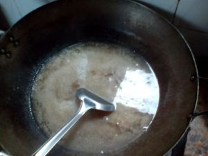2、粉煮水快开时,将辅料下入,先下生的,再下熟的,这个时候依个人口味可以放盐了。待煮差不多,关火,放醋,鸡精,油辣子。