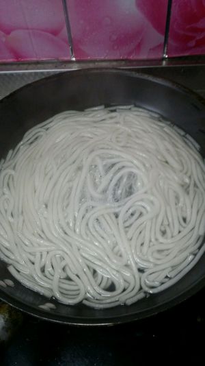 最后可以加入香菜或黄瓜丝,添加点绿色。做的时候家里没有了,所以没加。 土豆粉最好提前半天用温水泡上,煮的时候会节约时间的。