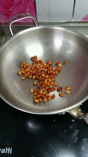 花生米慢火炒透,加入适量食盐,晾凉备用。注意一定要小火炒,也可以买成品。