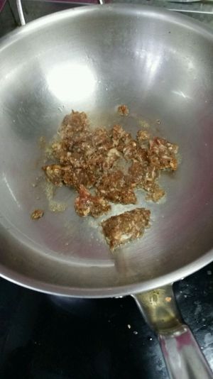 肉馅,葱,姜,干辣椒,入锅煸炒