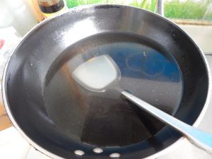 锅中倒油 油量为平时炒菜的两倍即可!茄子很吸油的!