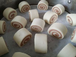 大功告成了,上笼蒸,留2㎝距离,避免蒸好粘连。