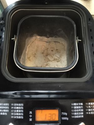 把面粉,牛奶,酵母,白糖全部倒入面包桶中,设定面团发酵功能,揉面和发酵一步可成!在也不用担心面发不好,馒头发不大了!