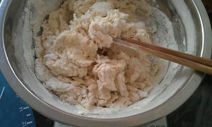 面粉中不要一次加入很多水,根据面团干湿,用手边搅边加水,直到团成面团