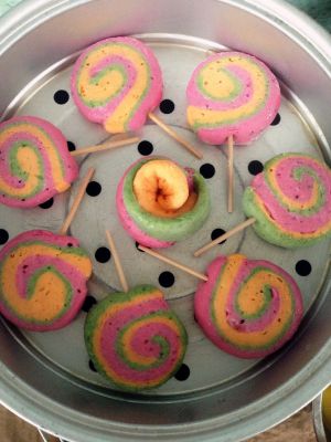 紫薯和面粉和好,比例无所谓,分小段擀成饺子皮,5-6张做一朵,按序排好,边连着边,玉米面和好搓成长条放中间卷起来,中间切断,稍微掰开一些花瓣。上笼蒸。