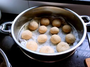有点大小不一 自己喜欢就好 哈哈哈 蒸锅加冷水 放好蒸屉 再发酵半小时左右 然后开火 蒸十五分钟 然后再闷五分钟左右