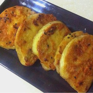 馒头吐司片裹蛋液,入煎锅中小火煎制。