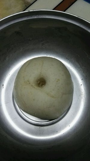 发了40分钟,用手指戳下去,没有很快反弹恢复,就说明发的差不多了。这时候,再继续揉面,把发酵出来的气泡挤掉。