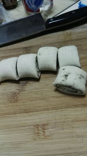 用刀切成差不多大小的馒头胚子,放进蒸笼。
