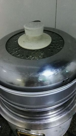 把蒸笼放在有水的电饭煲上,别插电哦,盖上锅盖,继续醒发二十分钟左右。醒好后,取下蒸笼,电饭煲通电,水开后,上锅蒸15分钟。