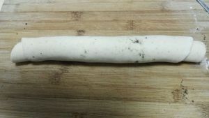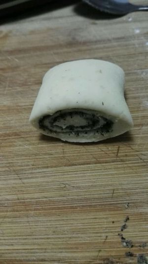 把撒好的面皮裹起来,如图,尽量裹紧一点。
