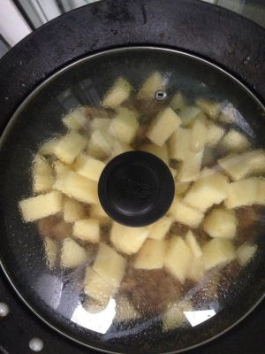 放入土豆 撒盐 盖上锅盖 继续焖5min 开锅盖 翻炒