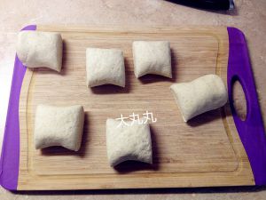 取出面团后用手揉面排干空气再将面团整形成长条,用到切成6份。