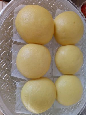 再逐个放入蒸笼,盖上盖,静置醒发20分钟左右(根据天气,夏天醒发15~20分钟,冬天是20~30分钟),醒发后的体积要有稍微膨胀变大些即可;