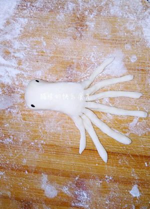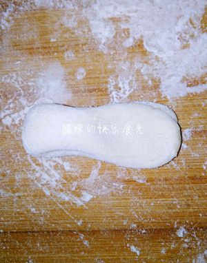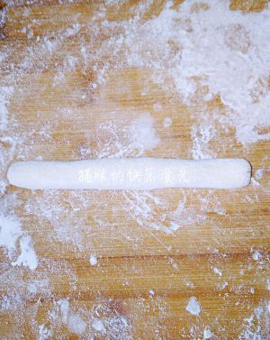 然后把面团继续用擀面杖排出里面的空气。用刀切成小块,我在上面给划了口子