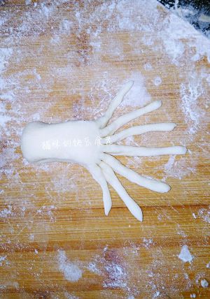 用手指捏住细条的一端将其轻轻地拧成长细条,并顺势将其拉长一些。