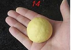 取一个小剂子;放在案板上朝顺时针方向滚动;直到把小面团滚圆为止;
