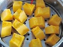南瓜清洗干净后切成小块,放在蒸锅里蒸20分钟;