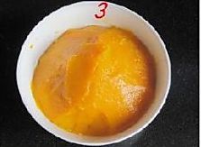 从锅中把南瓜取出后去皮;把南瓜用勺子压成泥;