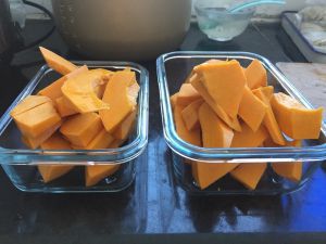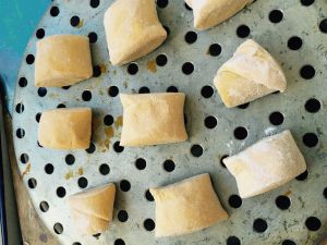 妈妈自己蒸的馒头,横着切几刀竖着切几刀,切成大约1.5厘米宽的小方块