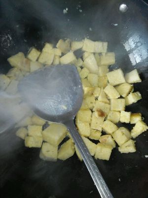 锅内热油翻炒,容易糊锅哦,注意及时翻动