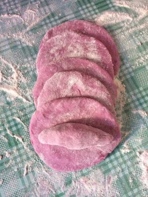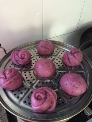 和面的时候把面粉和紫薯放一起,紫薯少面干少量加水,面发酵起来,大概2小时