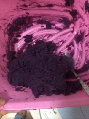 紫薯煮好以后搅拌成泥,加一点点白糖