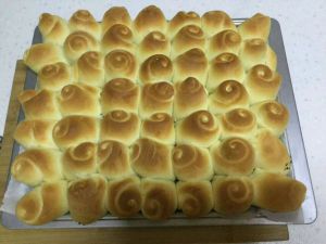 揉好后进入第一次发酵,至两倍大,取出排出空气,分成21份。