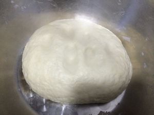 一小时后,面团变大至原先的1.5-2倍大,内部充满气孔,呈现蜂窝。这时候要反复揉面排气。然后再盖盖子继续醒发20分钟,再揉面。