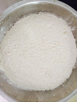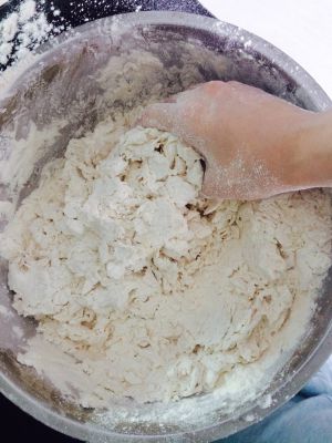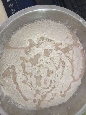 自发粉内一点点加入温度在30-40℃的温水,搅拌成絮状。