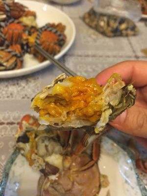 蟹肉鲜甜,蟹黄沙沙油油的。