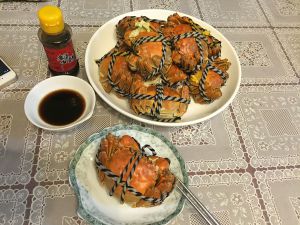 然后就可以就着酱吃香喷喷的大闸蟹了呦