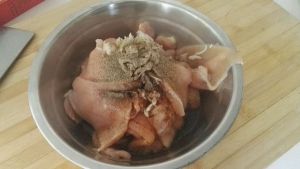 鸡胸肉剖开对半.中间不切断.用刀背剁下.方便入味.