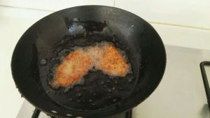 炸5、6分钟左右,两面焦黄,就可以捞出控油。