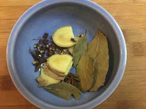 放入葱蒜辣椒炒出香味后,加入一罐啤酒,加入其他调料,转小火炖煮。