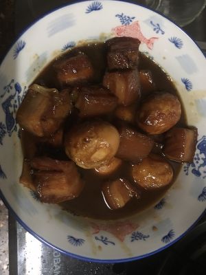加料酒、生抽、冰糖(或白砂糖)、啤酒(或高汤、白开水),没过肉块,盖锅盖大火烧开,后将煎好的鸡蛋放入,小火焖30分钟!