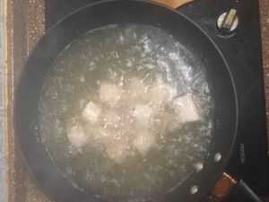 水烧开后放入红烧肉焯水;肉的颜色变白后搅拌一下从水里拿出备用;