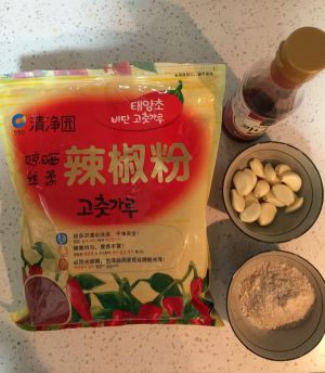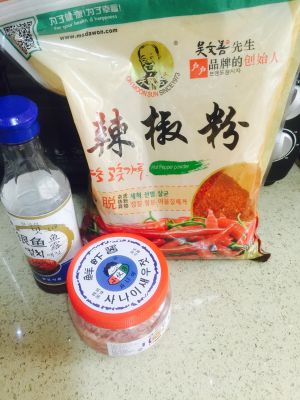 这是腌制的调料。韩国辣椒面建议用粗面,鱼露和虾酱没有可以不加,但是加了味道肯定会好很多。