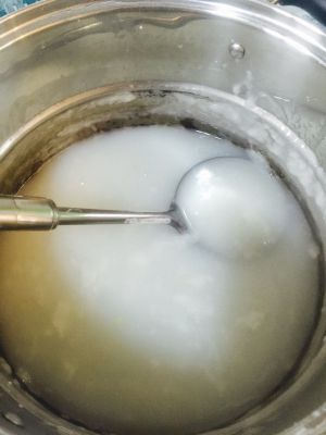 腌制萝卜的时候可以先准备一些糯米粉,放入冷水中,烧至粘稠,冷却备用。