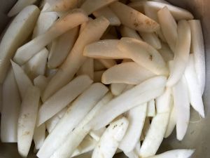 小白萝卜用盐腌制2小时,水洗,沥干水