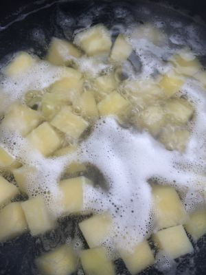 土豆切丁,汆水7分熟,捞出沥干水分,备用