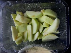准备好食材,苹果两个,生粉一碗,白砂糖一碗。